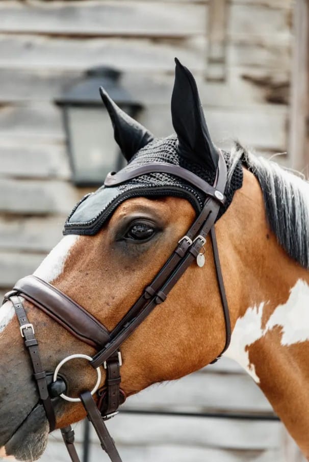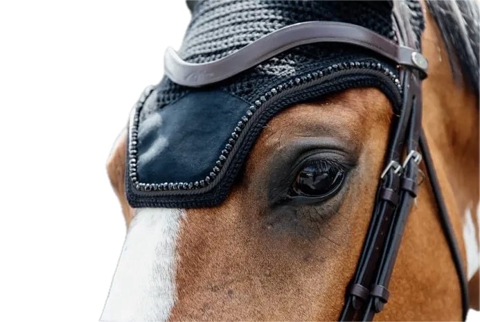 В’язані вушка в поєднанні з оксамитовою вставкою та перлинами, привертають увагу та одночасно захищають вуха коня.