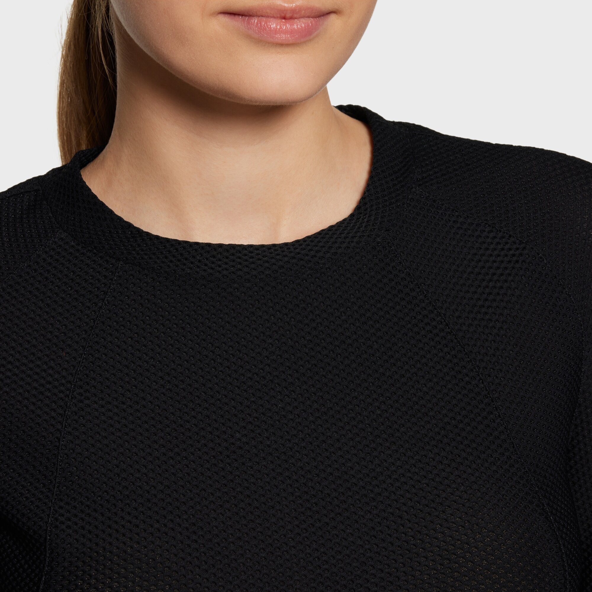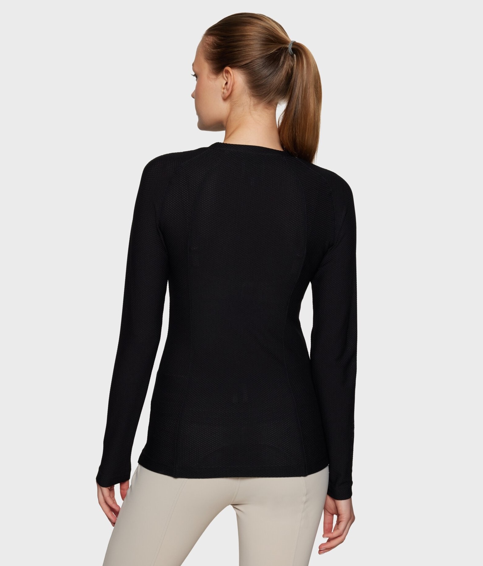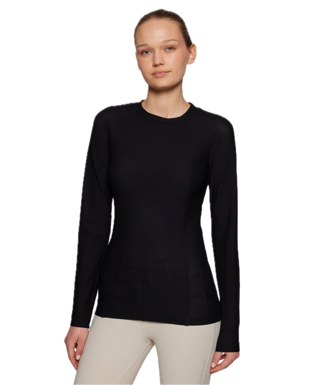 Elyfreshtec чорного кольору з коефіцієнтом захисту UPF 50+ забезпечує чудовий захист від сонця, що робить його незамінною річчю для вершників, яким важлива функціональність та вишуканість тренувального екіпірування.