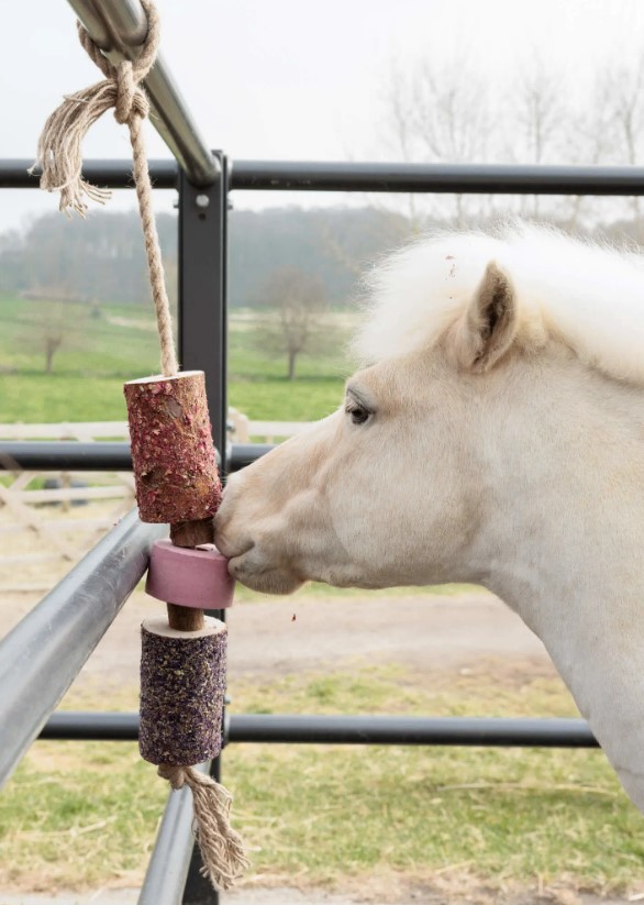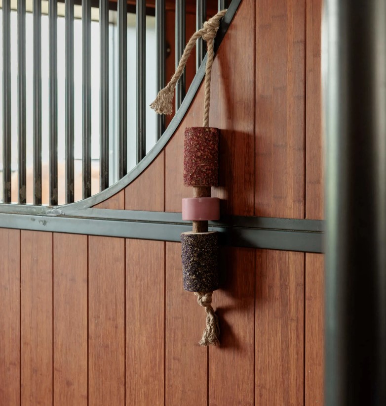 Принесіть ліс у свою стайню зі 100% органічною дерев’яною іграшкою для коней, виготовленою із сосни та берези. Розроблена, щоб зайняти і розважити вашого коня, цей натуральний антинудний стимулятор пропонує сенсорну стимуляцію через запах і текстуру.