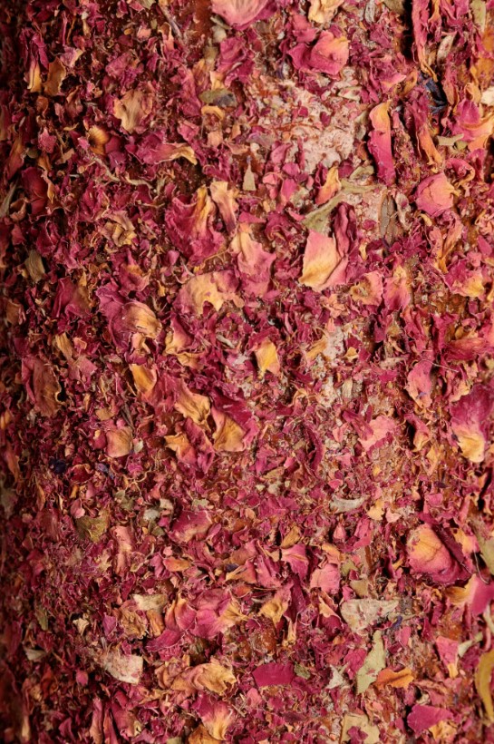 Червоно-рожевий шматочок містить пелюстки дикої троянди, натуральне джерело антиоксидантів, особливо вітаміну С, що володіє травними та протизапальними властивостями, а також приємним квітковим ароматом.