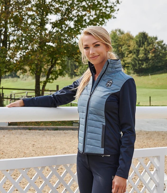 Блискуча стрічка на двох кишенях на блискавці та на комірі ззаду.
