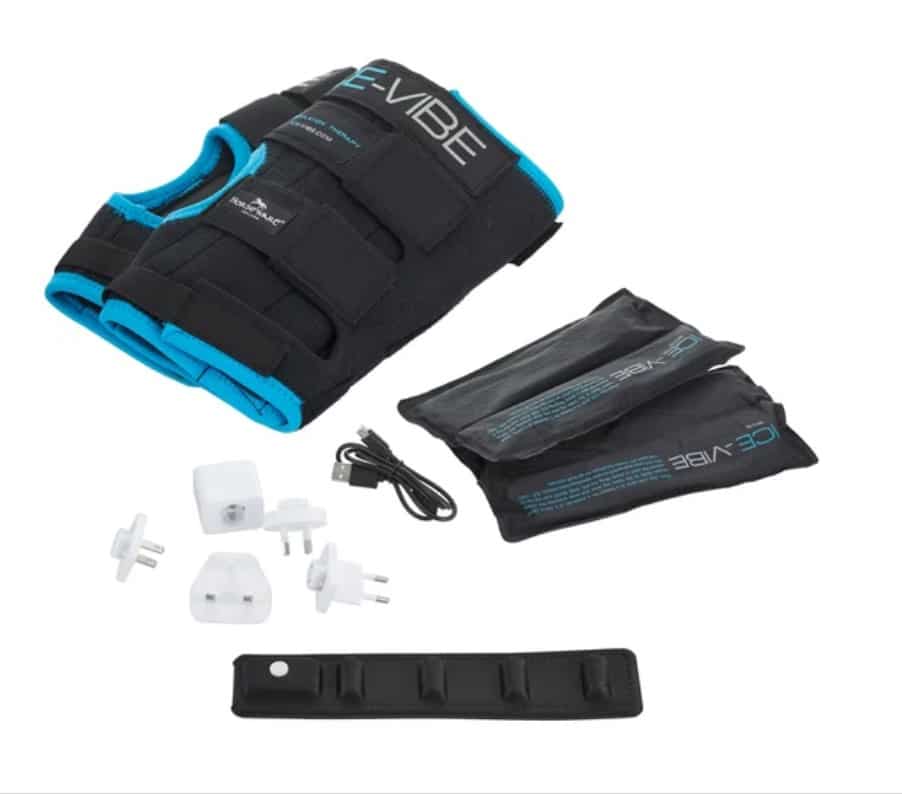 Повний комплект: 2 ногавки, 4 холодні компреси, 2 панелі, 1 зарядний пристрій, 1 чохол на замку