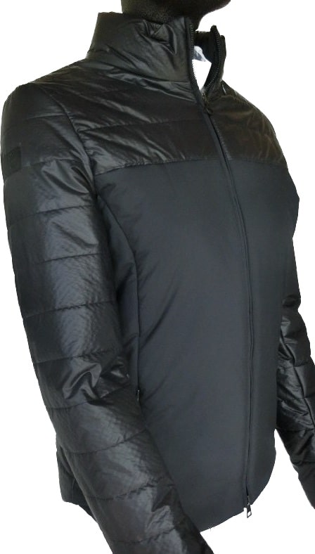 На теплій підкладці, з двома кишенями на блискавці та однією внутрішньою кишенею. Капюшон на блискавці, вбудований у комір.